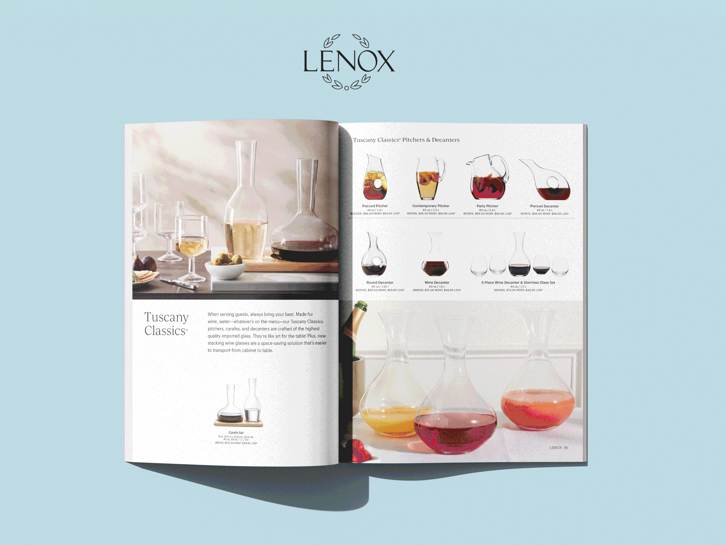 Lenox is a family of brands which includes Oneida, Kate Spade New York, Hampton Forge, Reed and Barton and Cambridge. Each individual brand has a unique identity that must be followed while designing. From color to typography, each catalog is carefully curated which each brand in mind.